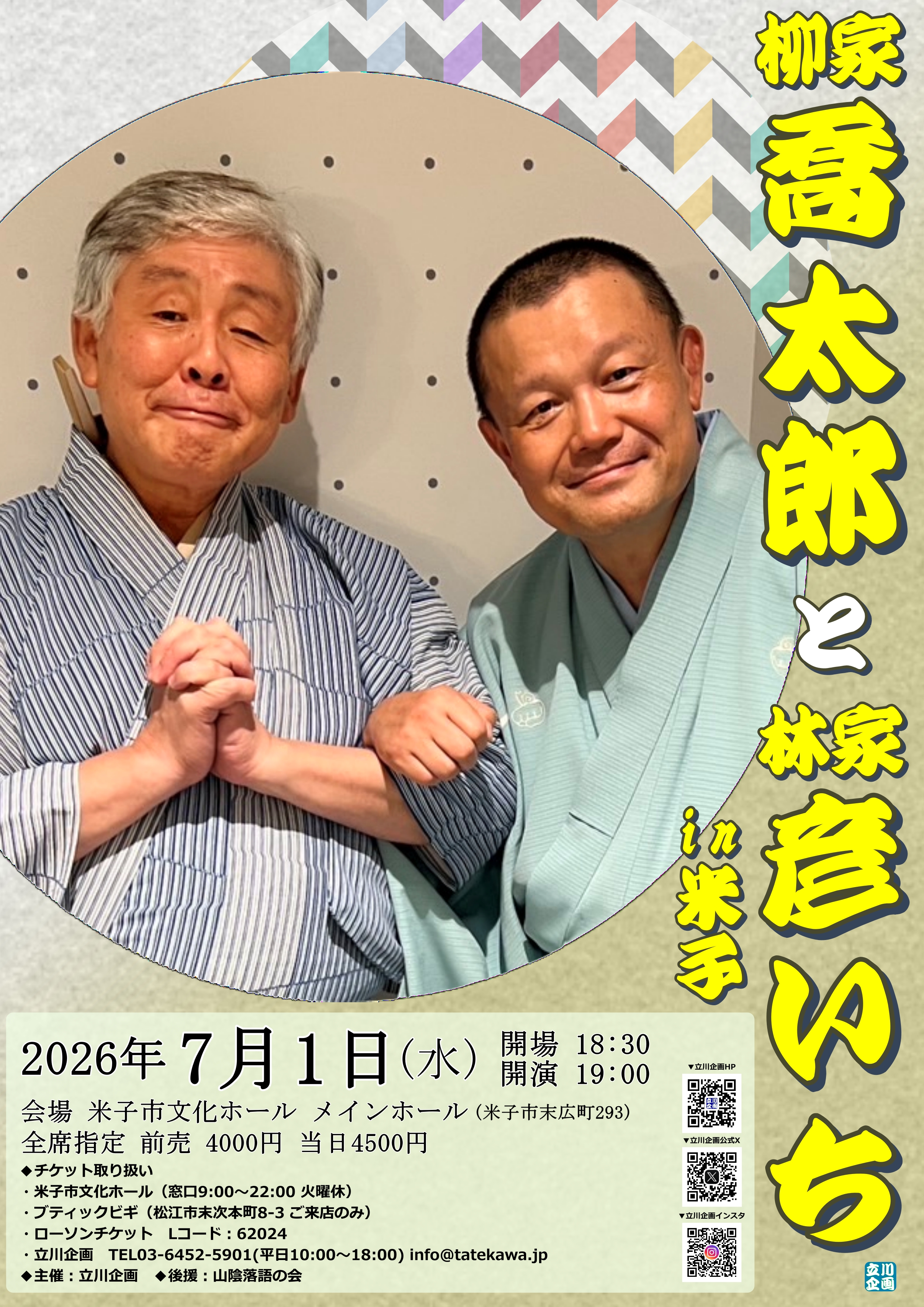 - ♦鳥取県♦【4/1発売!】7/1柳家喬太郎と林家彦いちin米子