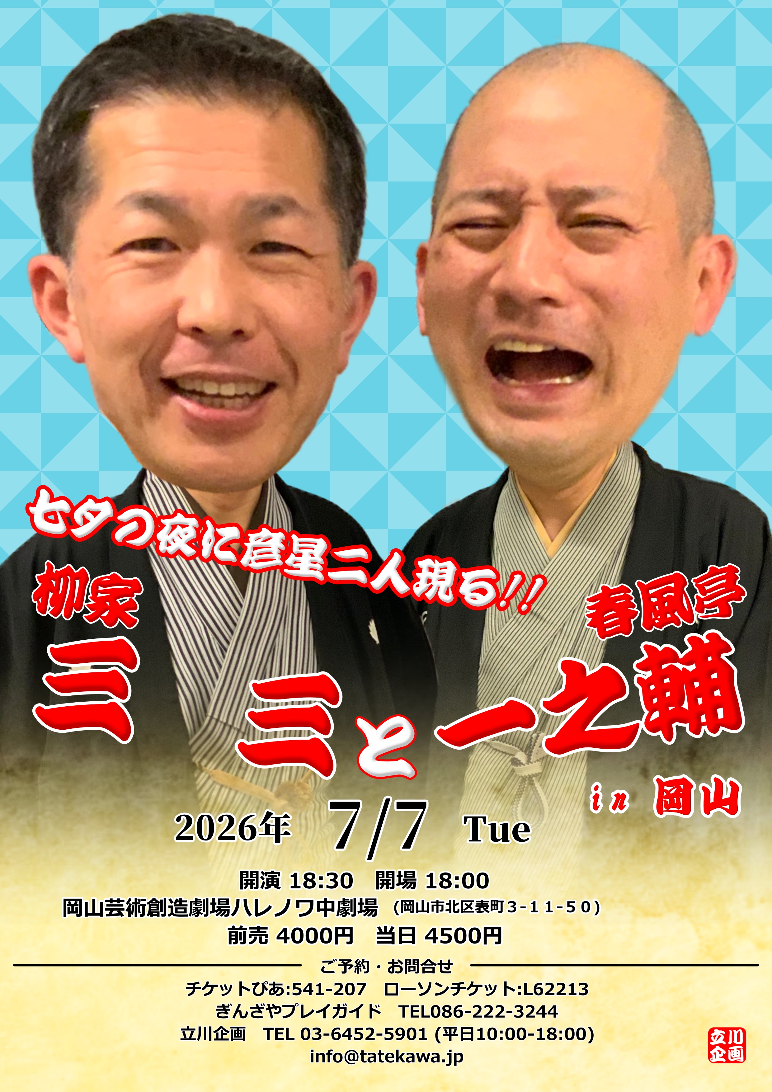 - ♦岡山県♦【4/7発売!】7/7柳家三三と春風亭一之輔in岡山