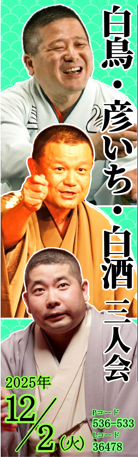 - 【発売中!】12/2渋谷で毎月落語会「白鳥・彦いち・白酒三人会」