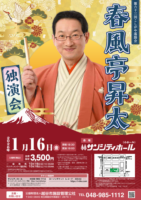 - 【10/19一般発売!】2026年1/16第63回こしがや落語会「春風亭昇太独演会」