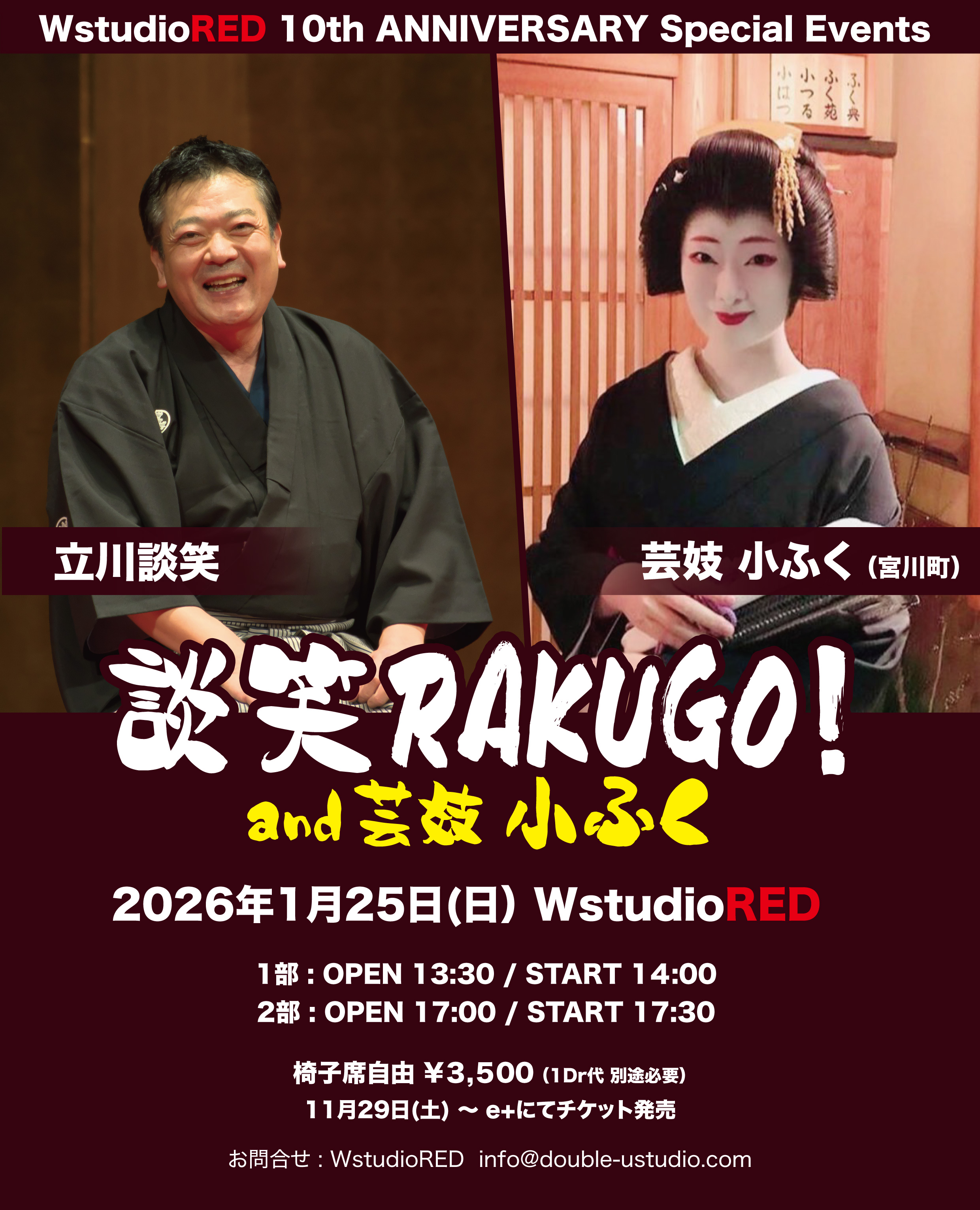 - ♦愛媛県♦【発売中!】1/25 WstudioRED 10th ANNIVERSARY Special Events 談笑RAKUGO!and芸妓 小ふく