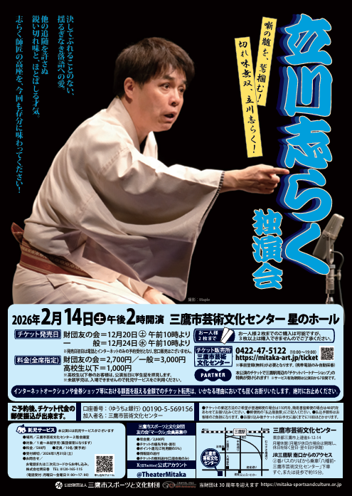 - ♦岐阜県♦【発売中】2026年1/17立川志らく独演会