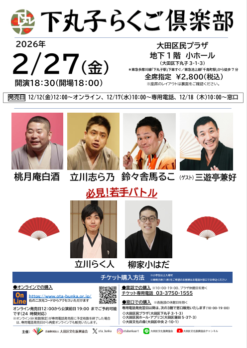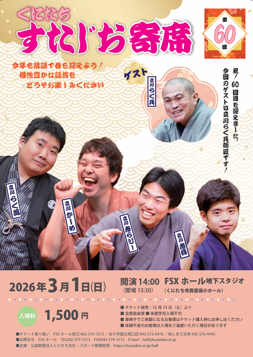 - 2026年2/24の「柳家三三と春風亭一之輔」2/28「たちかわ笑ホール寄席」スケジュール追加しました。